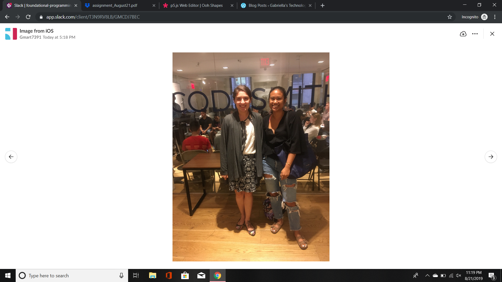 At approximately 6:40 the introductions started. The gentleman had us introduce ourselves and what we were interested in learning. He briefly spoke about the program they offered through their organization but I didn’t quite catch everything. According to my fellow peers, he was speaking about a JavaScript program that they offer that consists of 12 weeks for approximately 17,000 dollars. Which overall didn’t seem horrible for the length of time, but I honestly don’t know how I would be able to retain so much knowledge in such a short amount of time. He then proceeded to show us some of the previous graduates from the program and how successful they are. A few slides later and we were looking at a JavaScript problems that needed some solving. The man went over the basics and then some. Funny enough in class today, we briefly spoke about arrays, variables, and Boolean conditions. In the problem on the screen we used all of these techniques to find out whether or not the array was true. We also learned about the terms if, for, nor and math calculations such as add, subtract, divide, etc.